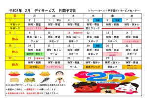 『デイサービス』 月間予定表 【令和8年2月】 ![]()