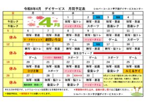 シルバーコースト甲子園デイ 月間予定表【4月】